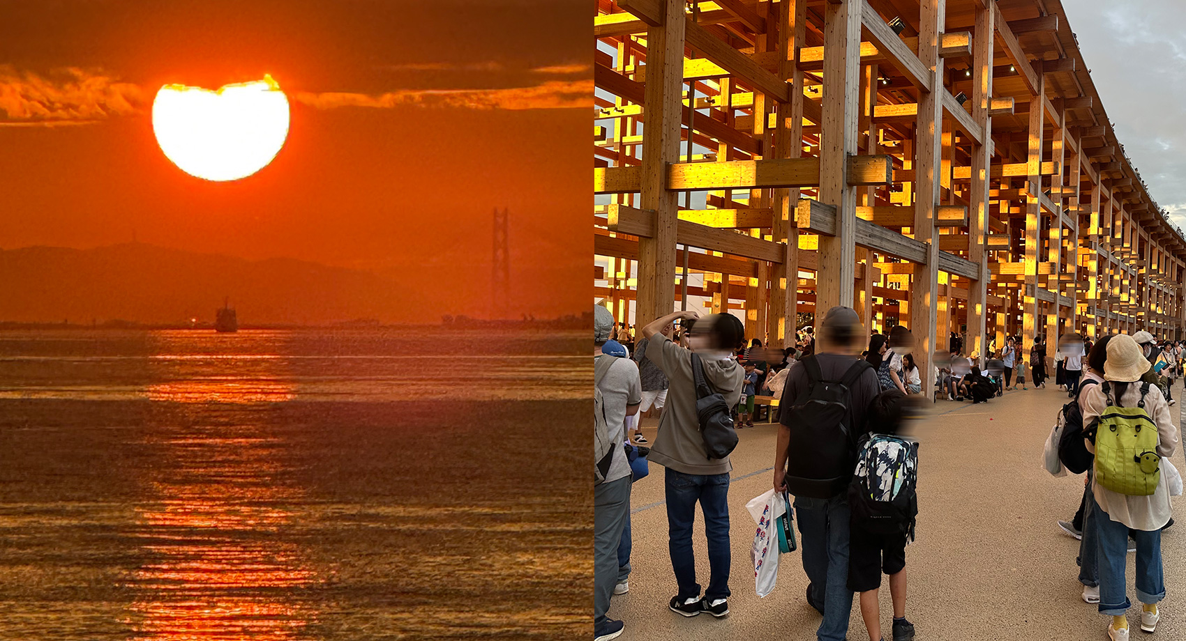 最後に大屋根リングから見た大阪湾に沈む夕陽をどうぞ。未来の海も美しくありますように!