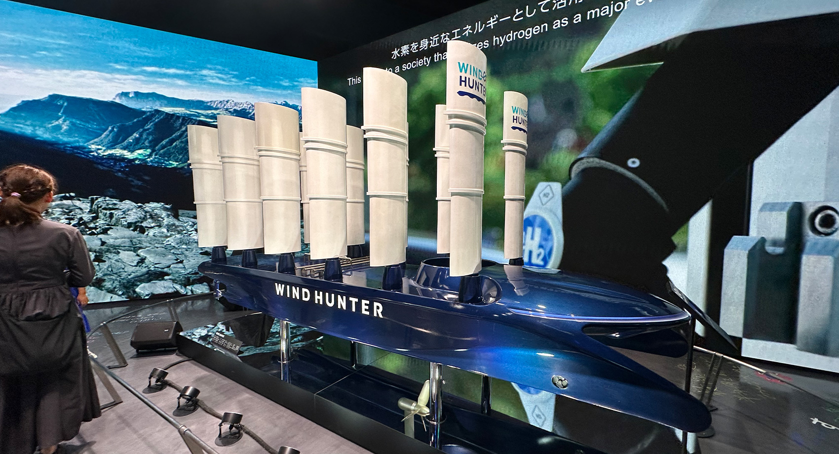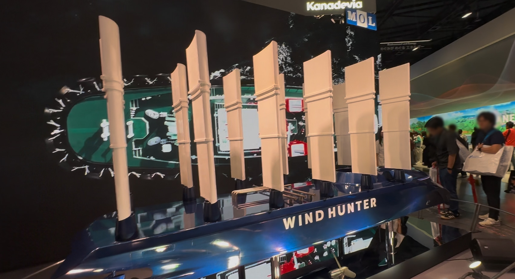 こちらは未来の船を紹介していたMOL商船三井ブース。この船は風を利用して走る、ウィンドハンター。令和の帆船なんです!